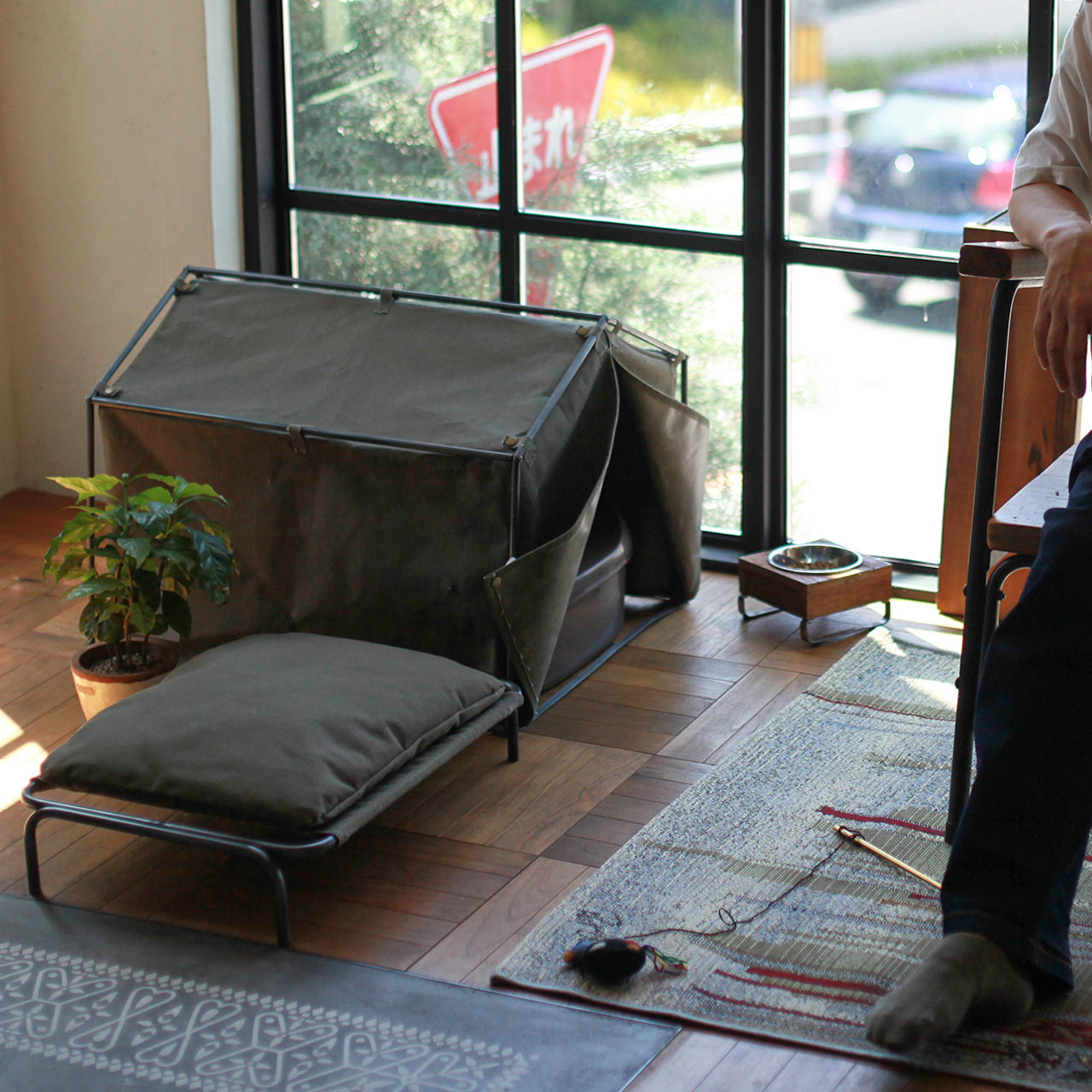 The unique tent design gives it an outdoor and utilitarian feel, providing privacy for your pet and keeping them safe.