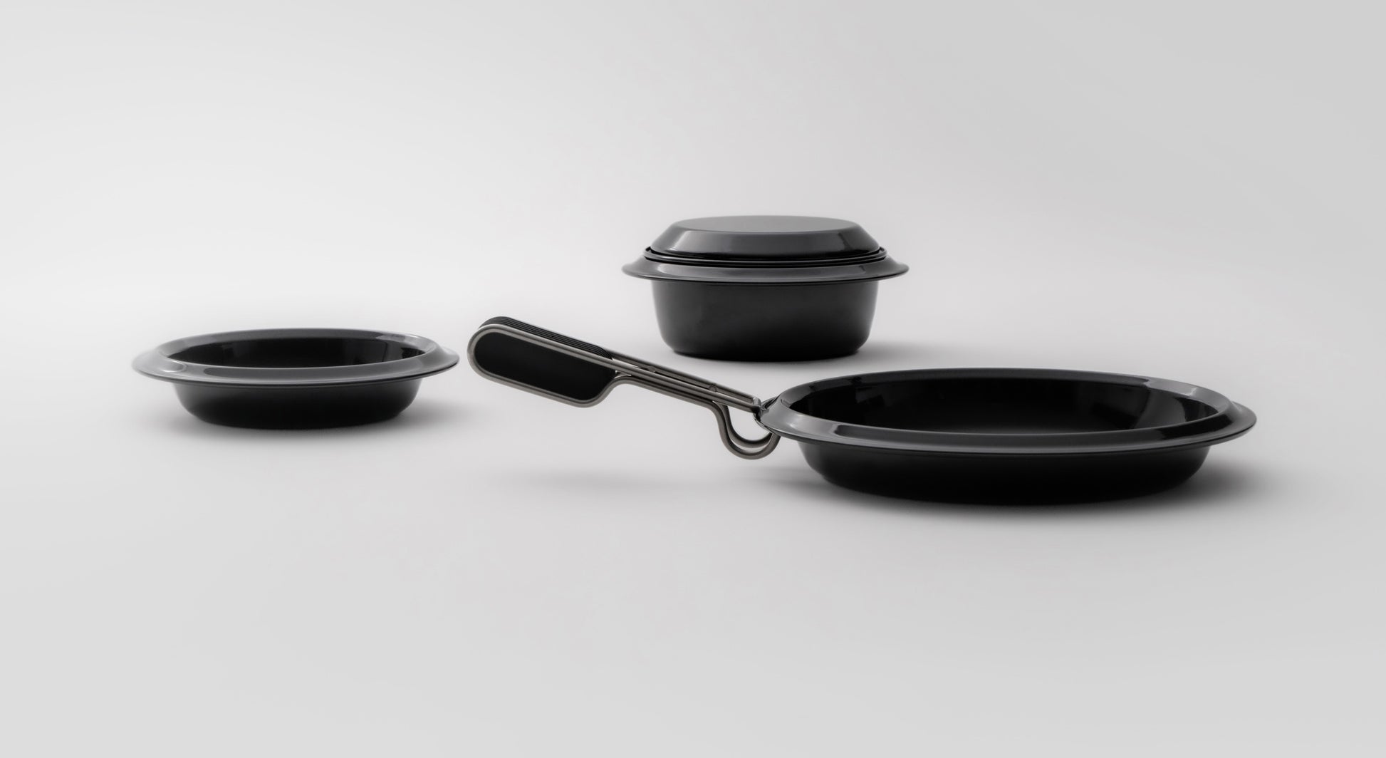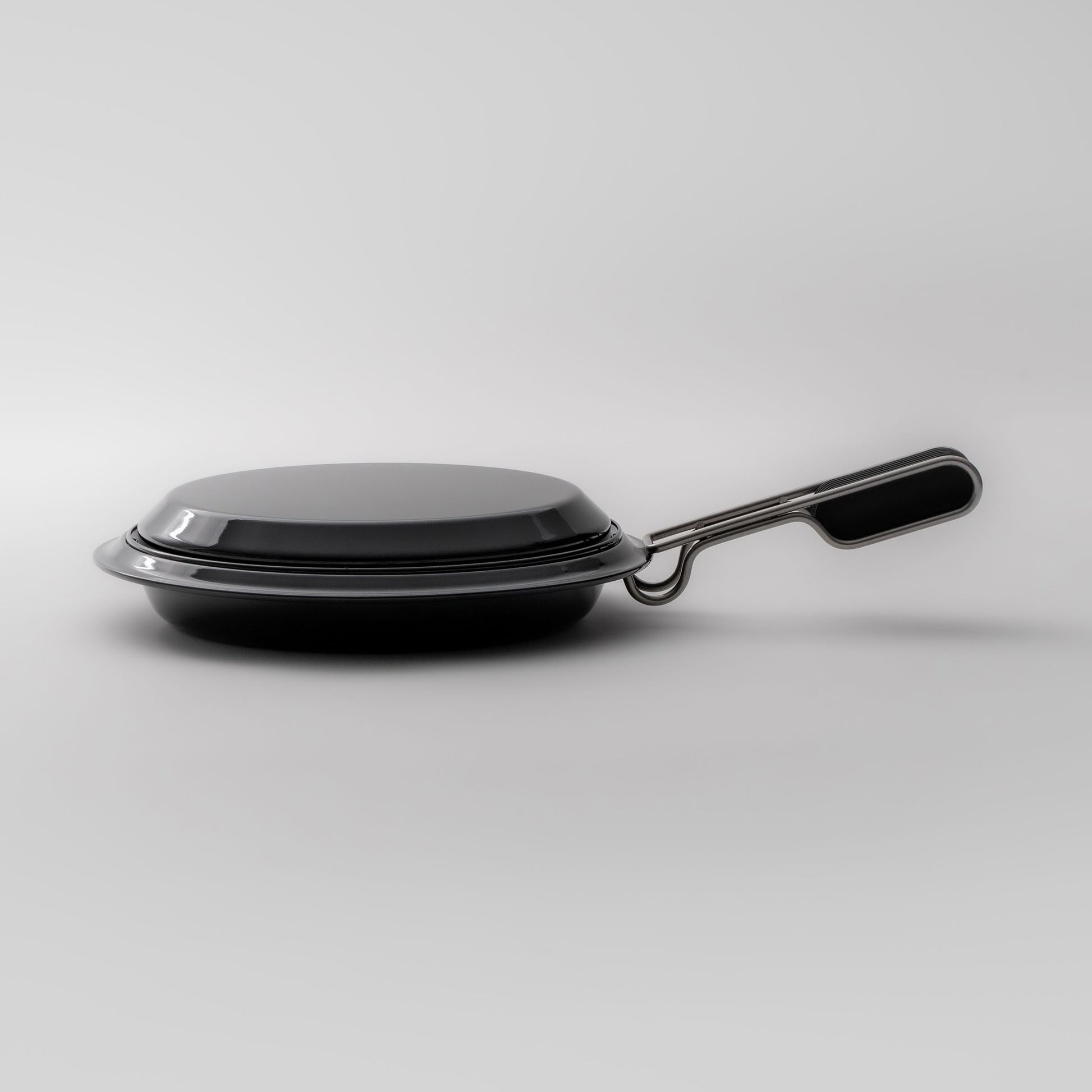 The specialized handle, used for transporting the dishes when hot, can be partially detached and also serves as a silicone holder, attaching magnetically to the lid when opening and closing. The lid can also function as a flat plate, even for heating food.